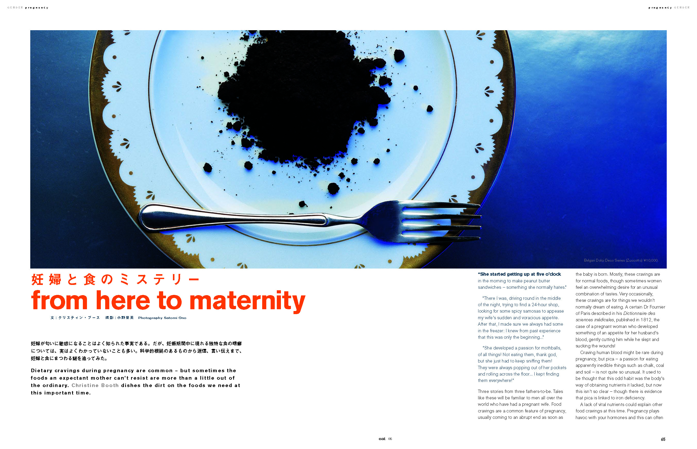 Three stories from three fathers-to-be. Tales like these will be familiar to men all over the world who have had a pregnant wife. Food cravings are a common feature of pregnancy, usually coming to an abrupt end as soon as the baby is born. Mostly, these cravings are for normal foods, though sometimes women feel an overwhelming desire for an unusual combination of tastes. Very occasionally, these cravings are for things we wouldn’t normally dream of eating. A certain Dr Fournier of Paris described in his Dictionnaire des sciences médicales, published in 1812, the case of a pregnant woman who developed something of an appetite for her husband’s blood, gently cutting him while he slept and sucking the wounds!